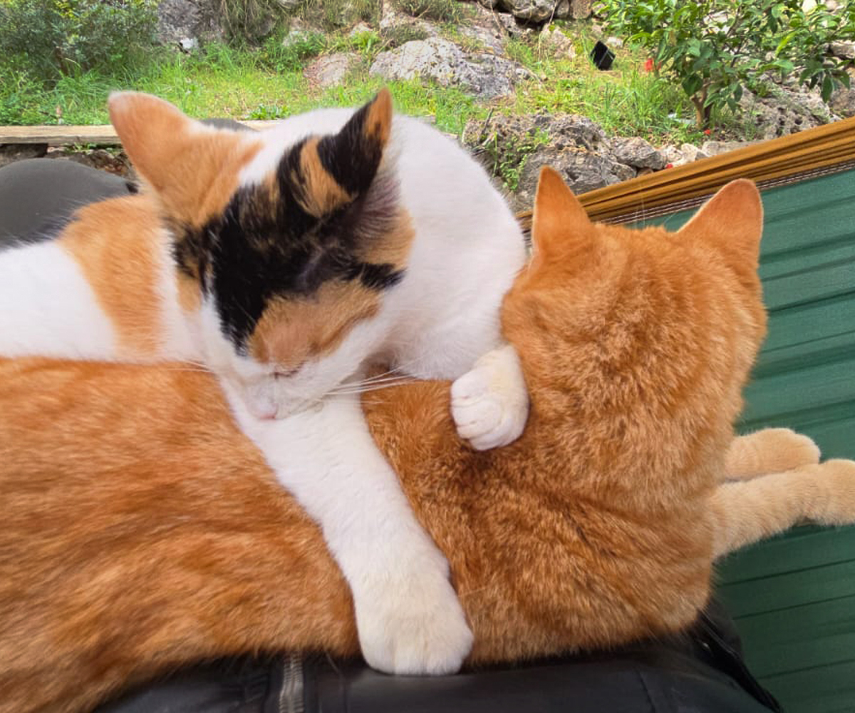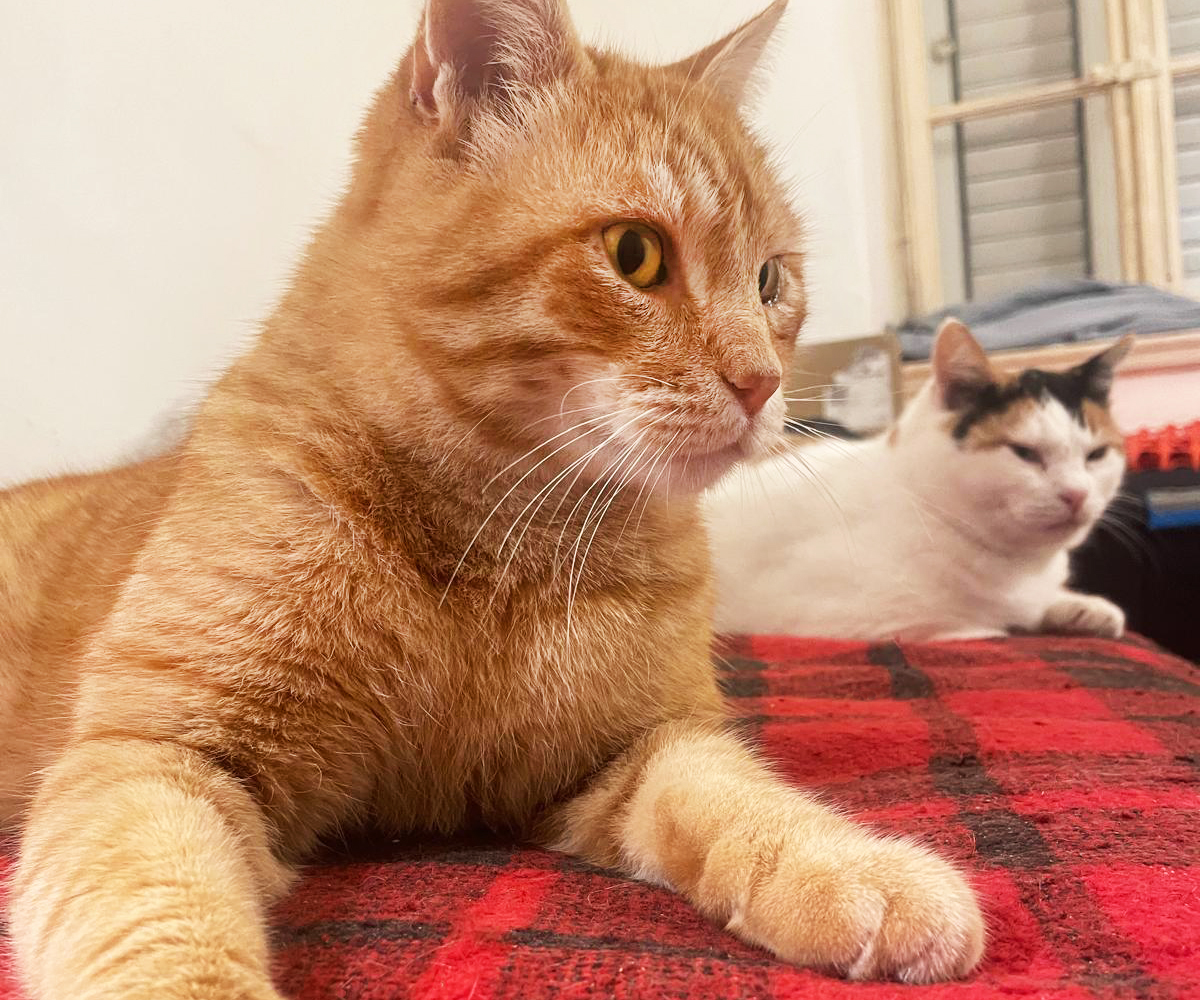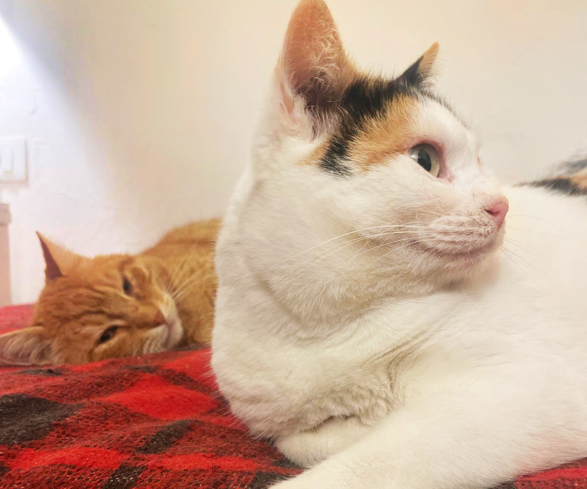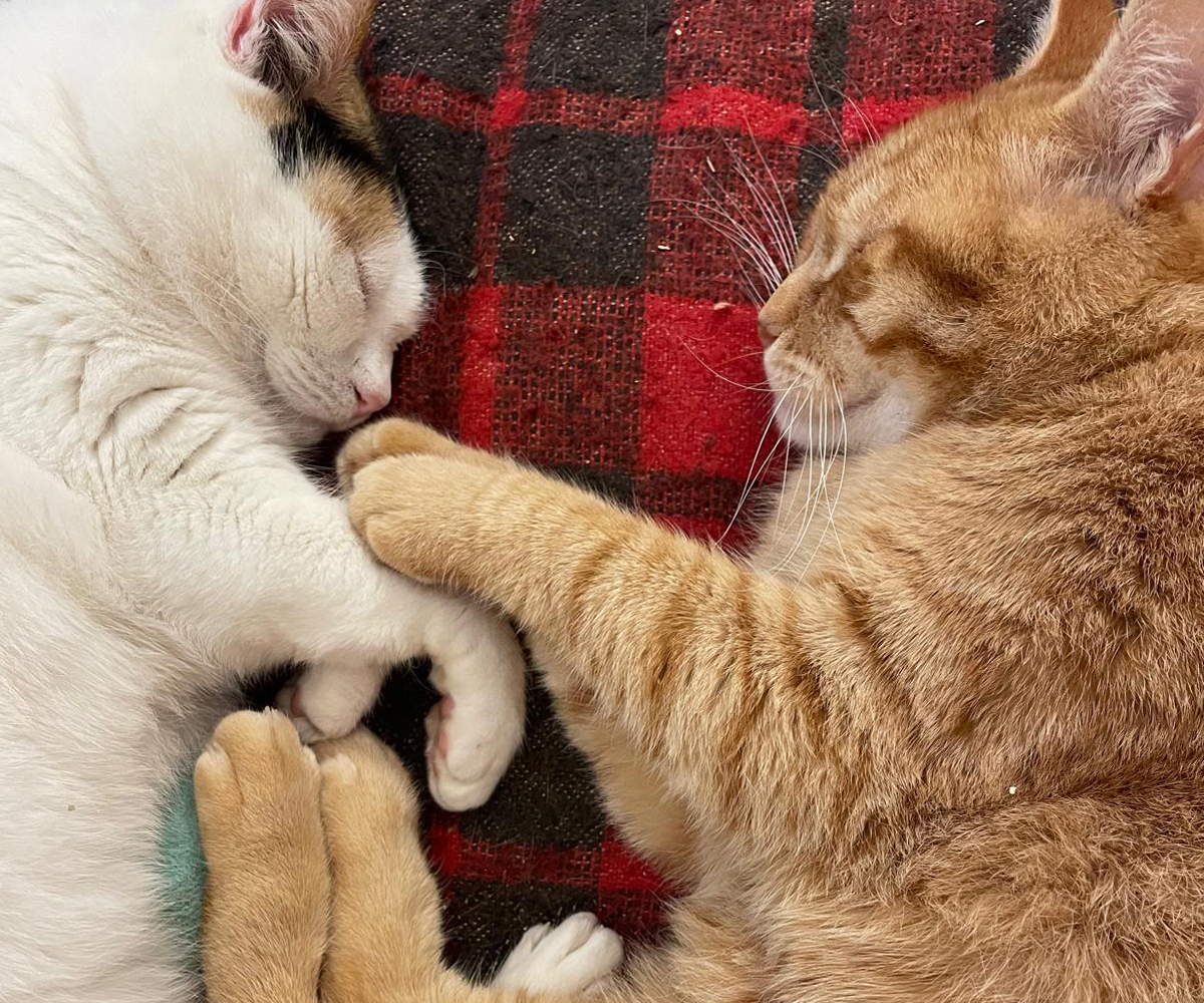 Fireball and Mini have spent their whole lives on our land since we brought them up there as kittens. They’re used to having a vast, unlimited territory, far from roads and the dangers of traffic. They’ve adapted well to life indoors as we foster them and get them ready for adoption, but their ideal home would also have a catio so they can still enjoy the fresh air.