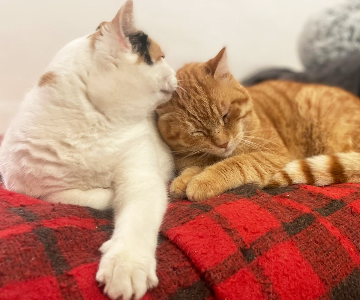 Fireball and Mini are a bonded pair, and they’re both super cuddly. Both have their passports, their vaccines, and are ready to travel. Both tested negative for FIV recently.